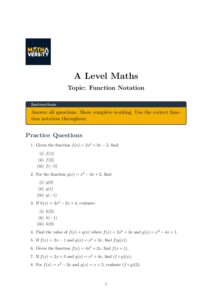 Enhance your understanding of function notation with this free A Level Maths worksheet. Work through exercises on evaluating functions, using composite and inverse functions, and applying notation in problem-solving.