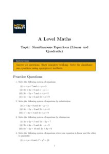 Master solving simultaneous equations with this free A Level Maths worksheet. Work through problems combining linear and quadratic equations using algebraic methods to build strong problem-solving skills.