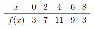 The table of values is given below:
